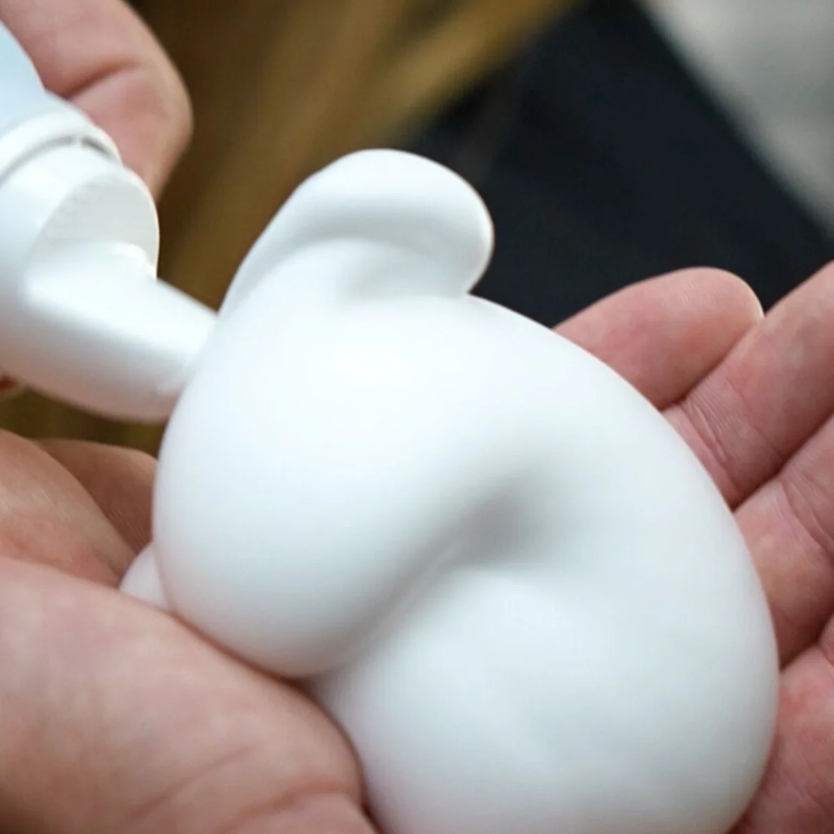 - Dispense Cashmere Cloud into your palm and rub your hands together to distribute the foam evenly