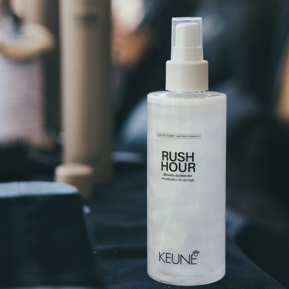 • Supercharge your blowout with Rush Hour, the ultimate blow-dry accelerator that cuts drying time while adding weightless body and shine.