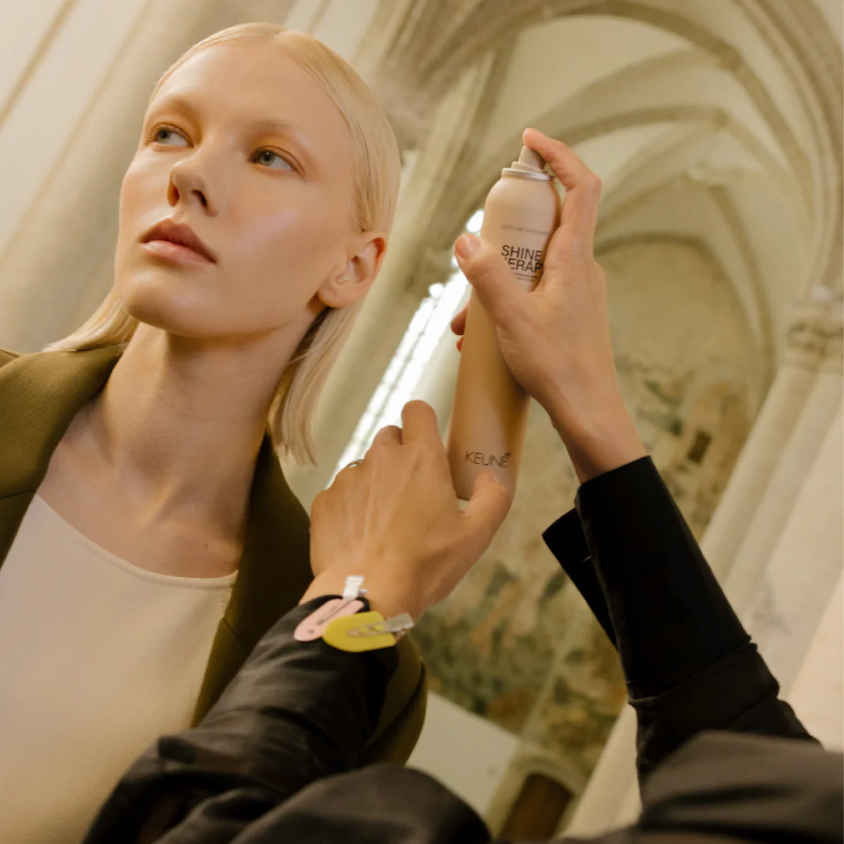 Unlock the brilliance of your hairstyle with our Shine Therapy spray, enhancing shine by up to 80% with a weightless, non-greasy formula.